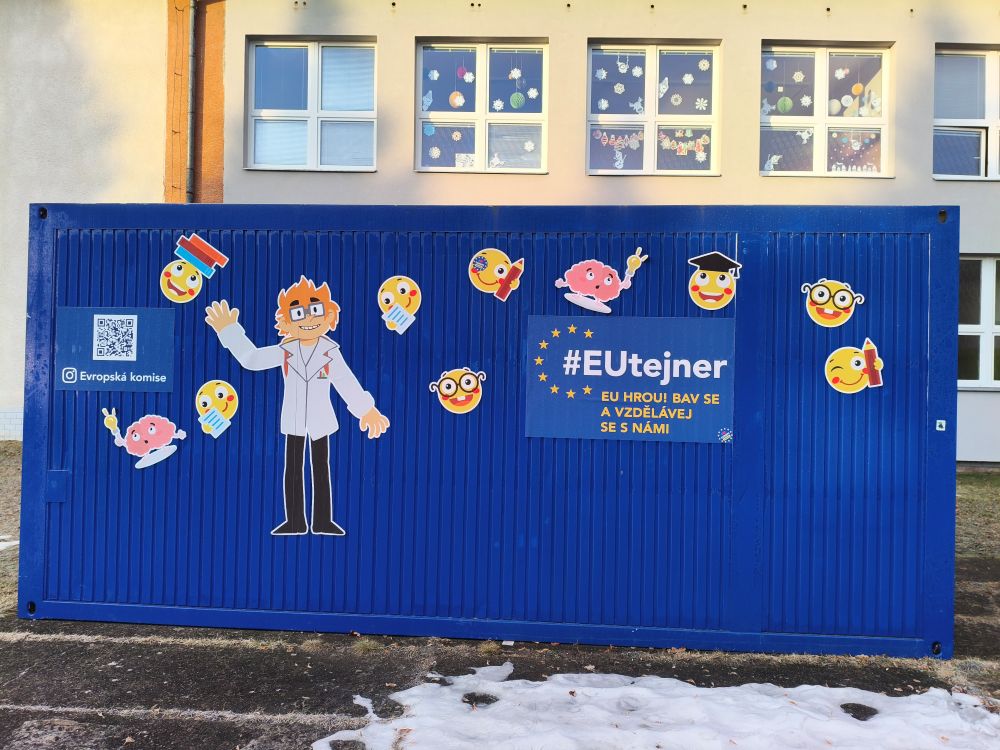 V prosinci a lednu jsme měli možnost využít EUtejner – mobilní vzdělávací kontejner Europe Direct, který nabízí moderní a interaktivní způsob, jak přiblížit dětem Evropskou unii a její fungování. Během této doby se postupně vystřídaly všechny třídy z 1. i 2. stupně. Uvnitř EUtejneru si žáci vyzkoušeli různé aktivity, sledovali krátké spoty a prostřednictvím digitálních nástrojů poznávali zajímavosti z evropských zemí i příklady toho, jak EU ovlivňuje náš každodenní život. Celá akce byla velmi přínosná, zábavná a zároveň vzdělávací. Žáci ocenili především interaktivní pojetí programu a možnost objevovat nové informace atraktivní formou. Děkujeme Europe Direct za zapůjčení EUtejner a těšíme se na další podobné projekty!