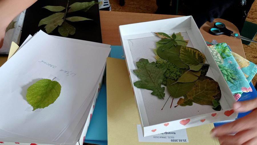 V rámci přírodovědy se žáci 5. třídy pustili do tvorby herbáře listů. Každý z nich měl za úkol nasbírat a vylisovat 20 různých druhů listů. Ve třídě jsme poté listy společně lepili, pojmenovávali a porovnávali, z jakých stromů a keřů pocházejí. Všichni zjistili, že to není jednoduchý úkol, a tak nám jako vzor sloužil velký strom ve třídě, na kterém byly vzorky různých listů. Výsledek naší práce můžete vidět v prvním listopadovém týdnu v hale, kde budou herbáře vystaveny. Všem děkuji za skvěle odvedenou práci.