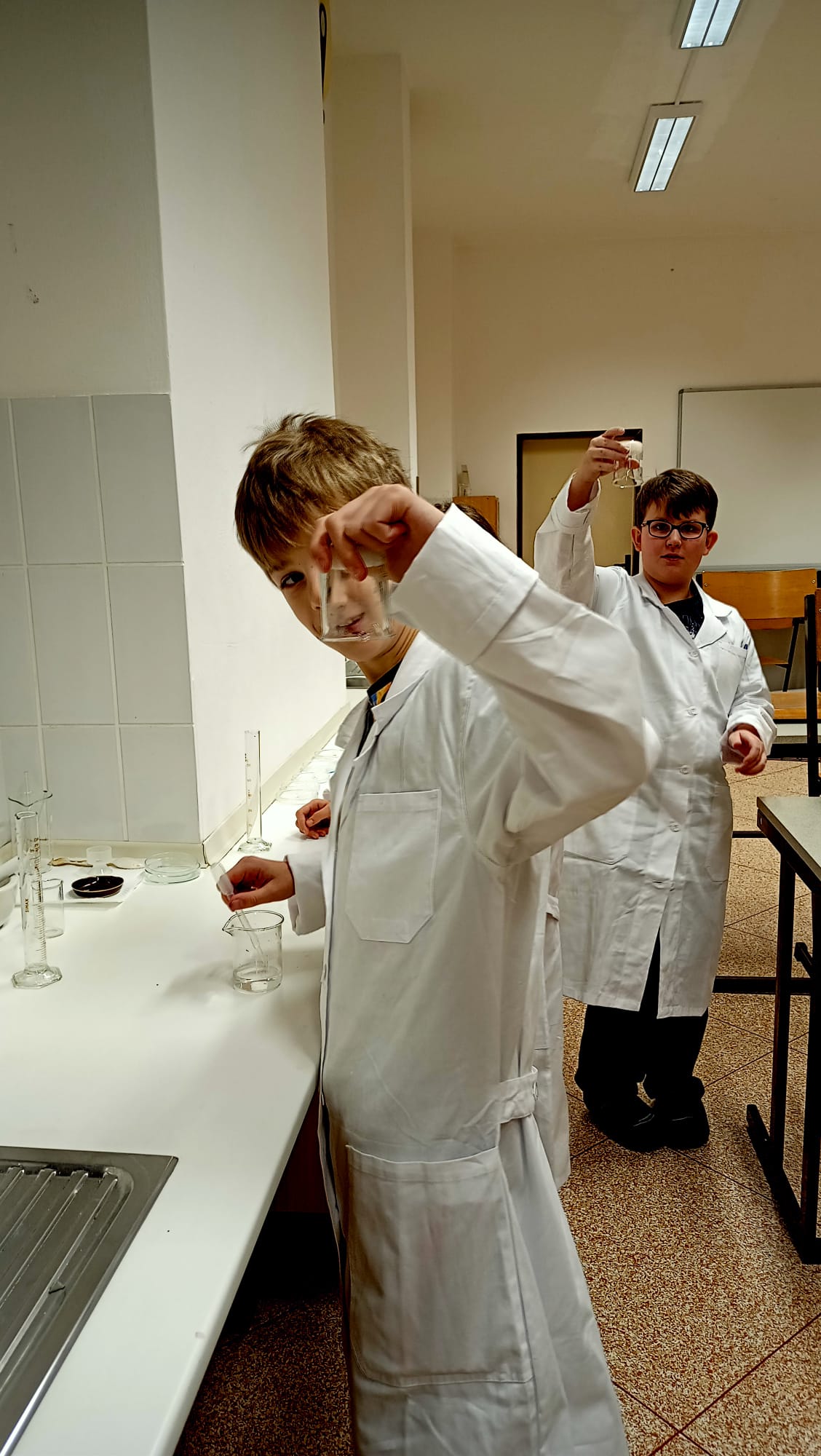 Každé pondělí ráno se v rámci přírodovědného kroužku scházíme, abychom si vysvětlili přírodní jevy a zároveň si vyzkoušeli jednoduché chemické pokusy. Mícháme, vyrábíme, kreslíme, a přitom se učíme. Mícháme barevné nápoje, vyrábíme lávovou lampu, vánoční stromek nebo led, který nestudí. Poznáváme svět kolem nás očima chemika a teď už i v bílých pláštích, za které moc děkujeme.