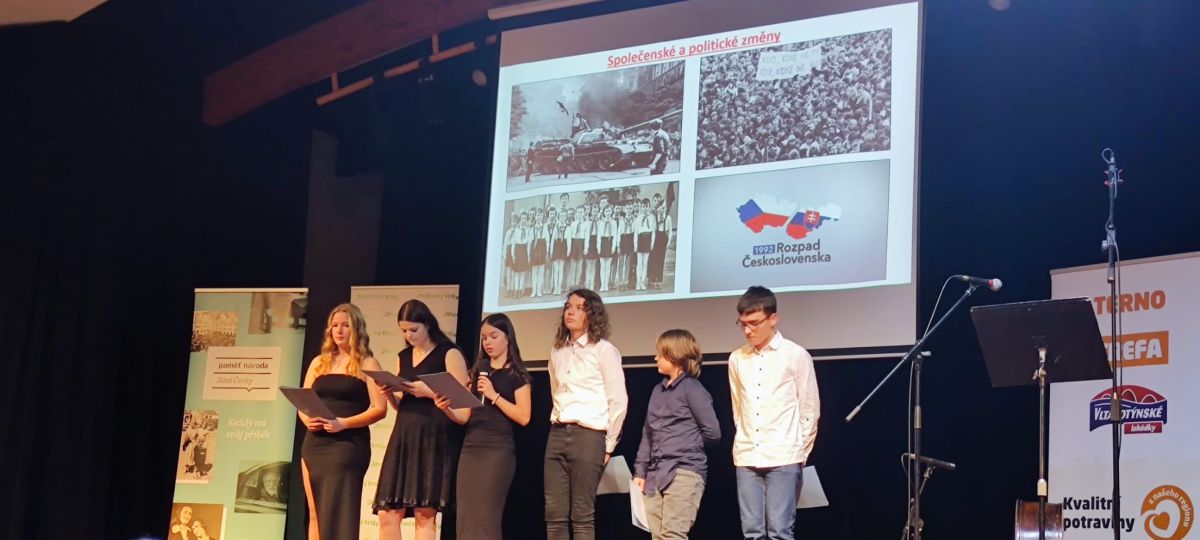 Již potřetí se žáci a žákyně 8. a 9. třídy ZŠ Horní Stropnice zúčastnili projektu, v němž seznamují sebe i své okolí s životem vybraného pamětníka. Tím byl letos pan Karel Máša, tatínek naší paní učitelky Aničky Mášové. Žáci společně museli pamětníka nejprve nalézt, poté s ním natočili rozhovor a následně formou hlasové nahrávky zpracovali zajímavosti ze života Karla Máši. Nahrávka vznikala v Českém rozhlase v Českých Budějovicích za podpory odborníků. Žáci tak měli možnost podívat se do nahrávacího studia, kde příběh nakonec natočili dle připraveného scénáře. Ač celý projekt stál hodně úsilí, výsledná práce dopadla výborně. Společná prezentace žákovských prací proběhla v Kulturním domě v Trhových Svinech. Za odměnu si každý odnesl nejen novou zkušenost, ale i dárkovou taštičku s překvapením.
