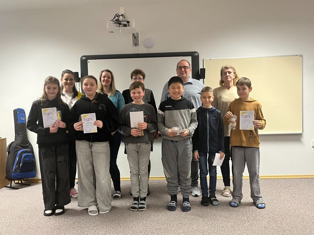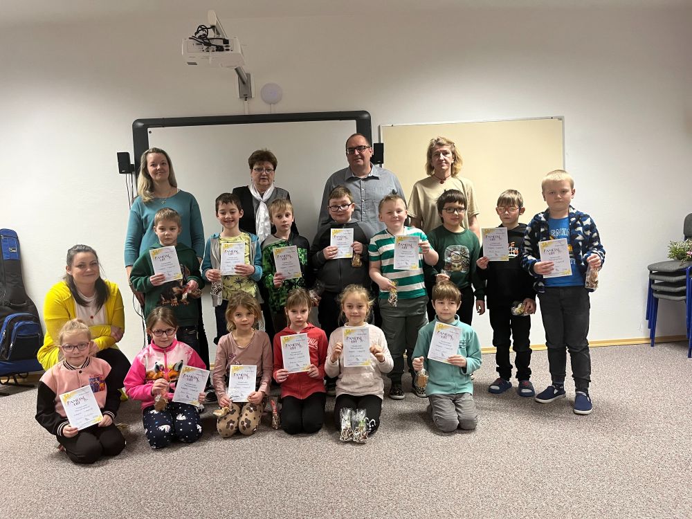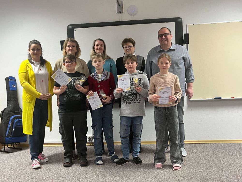 Dne 23. 2. 2026 proběhlo slavnostní vyhlášení výtvarné soutěže na téma „Ptačí svět naší školy“, která byla součástí celoročního projektu 3 klíče k umění. Do soutěže se zapojili žáci 1. a 2. stupně i děti z MŠ. Celkem bylo vystaveno 57 obrázků, které proměnily vstupní halu v pestrou galerii plnou fantazie, barev i originálních pohledů na ptačí říši kolem nás. Každý obrázek byl jedinečný a bylo vidět, že si žáci dali na své práci opravdu záležet. O vítězích rozhodlo hlasování žáků, učitelů, rodičů i přátel školy. Děkujeme všem, kteří se do hlasování zapojili a podpořili mladé umělce. Všichni soutěžící obdrželi pamětní list a drobný dárek jako poděkování za svou účast a kreativitu. Tři nejlepší žáci z 1. a 2. stupně byli navíc oceněni diplomem, dárkem a symbolickým Klíčem k umění – výtvarným klíčem.