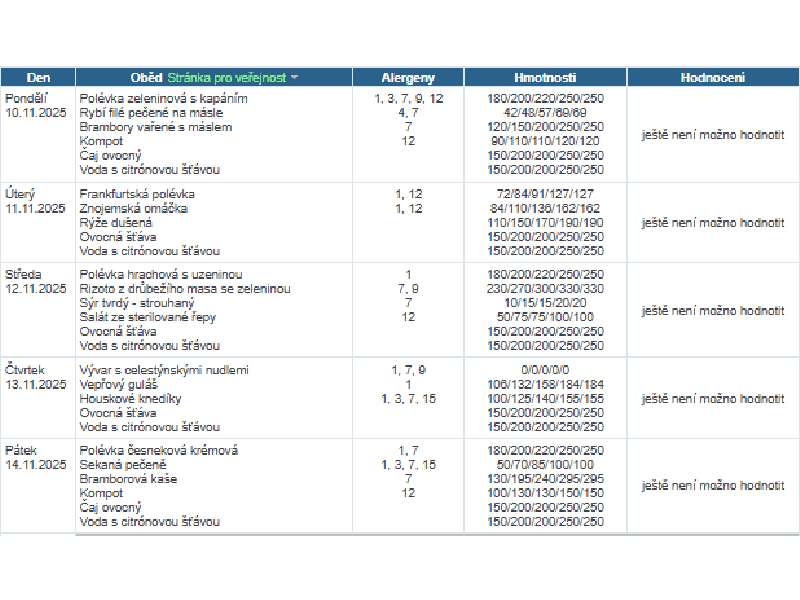 PŘEHLED ALERGENŮ - viz níže pod jídelním lístkemAktuální jídelní lístek 10. 11 - 14. 11. 2025ALERGENY