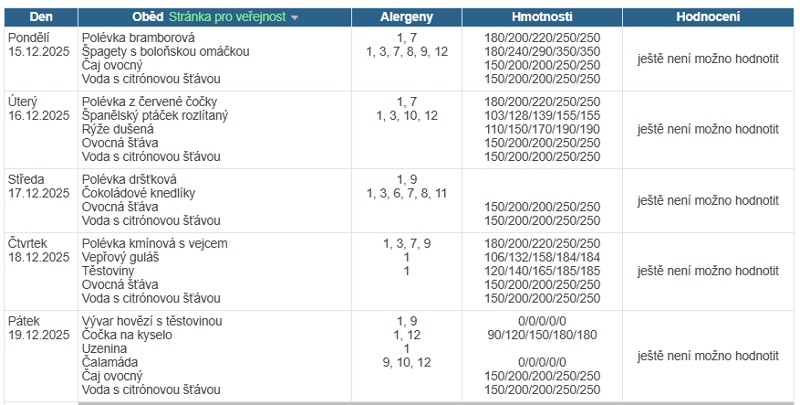 PŘEHLED ALERGENŮ - viz níže pod jídelním lístkemAktuální jídelní lístek 15. 12. - 19. 12. 2025ALERGENY
