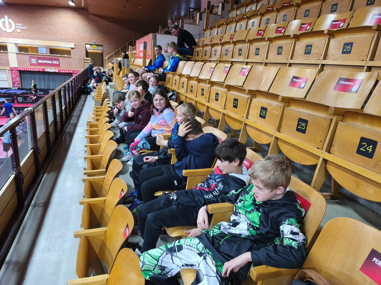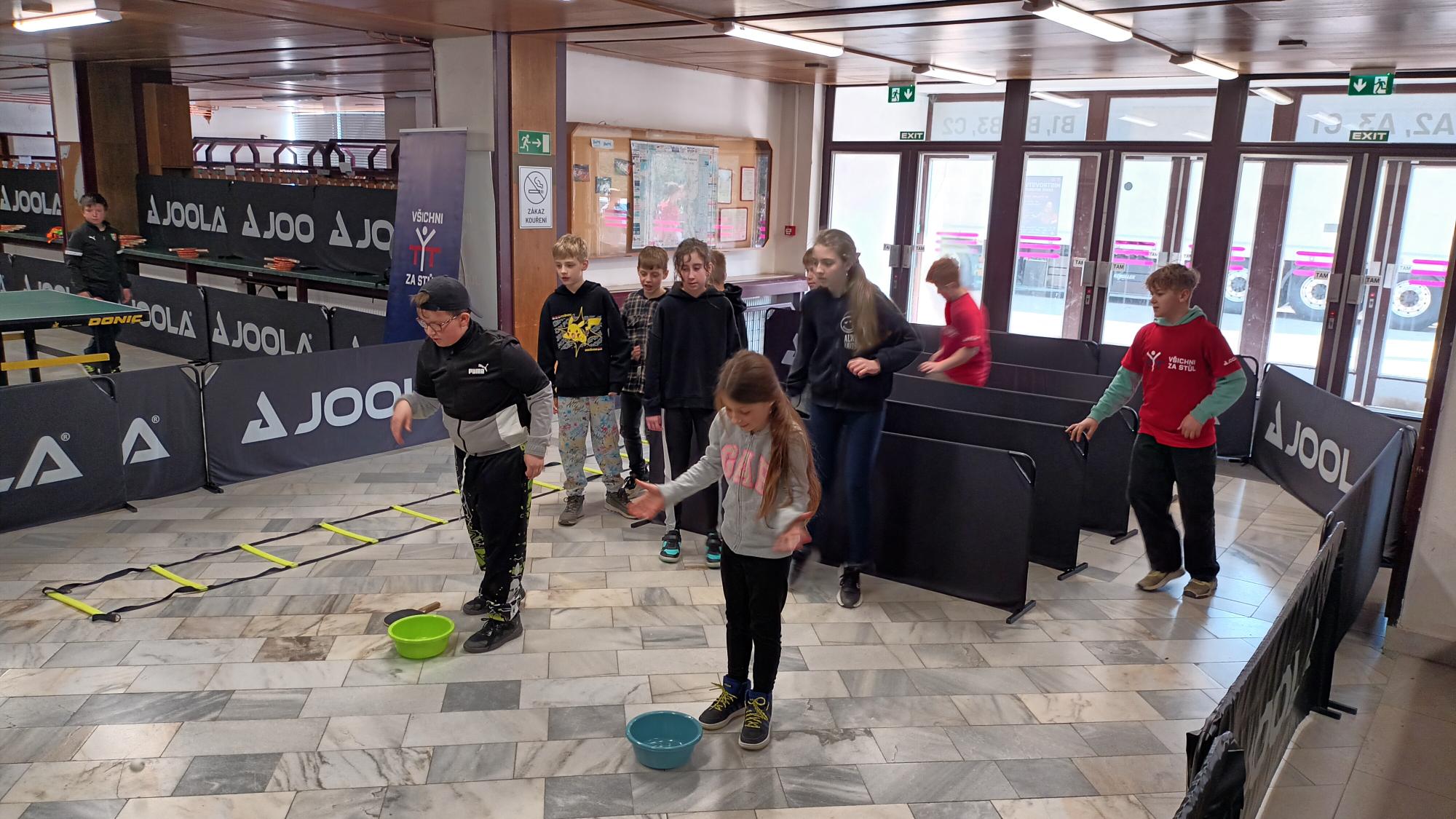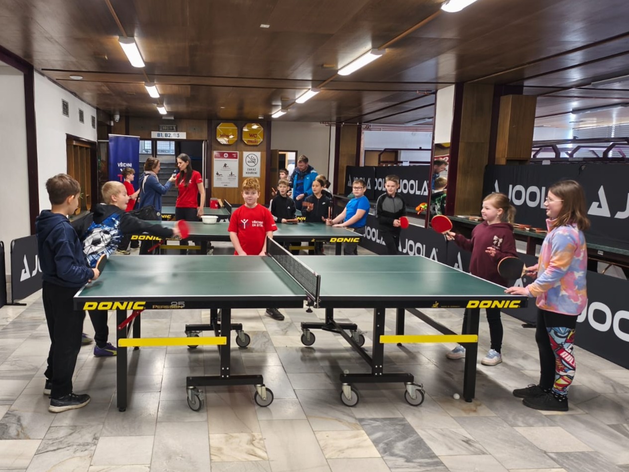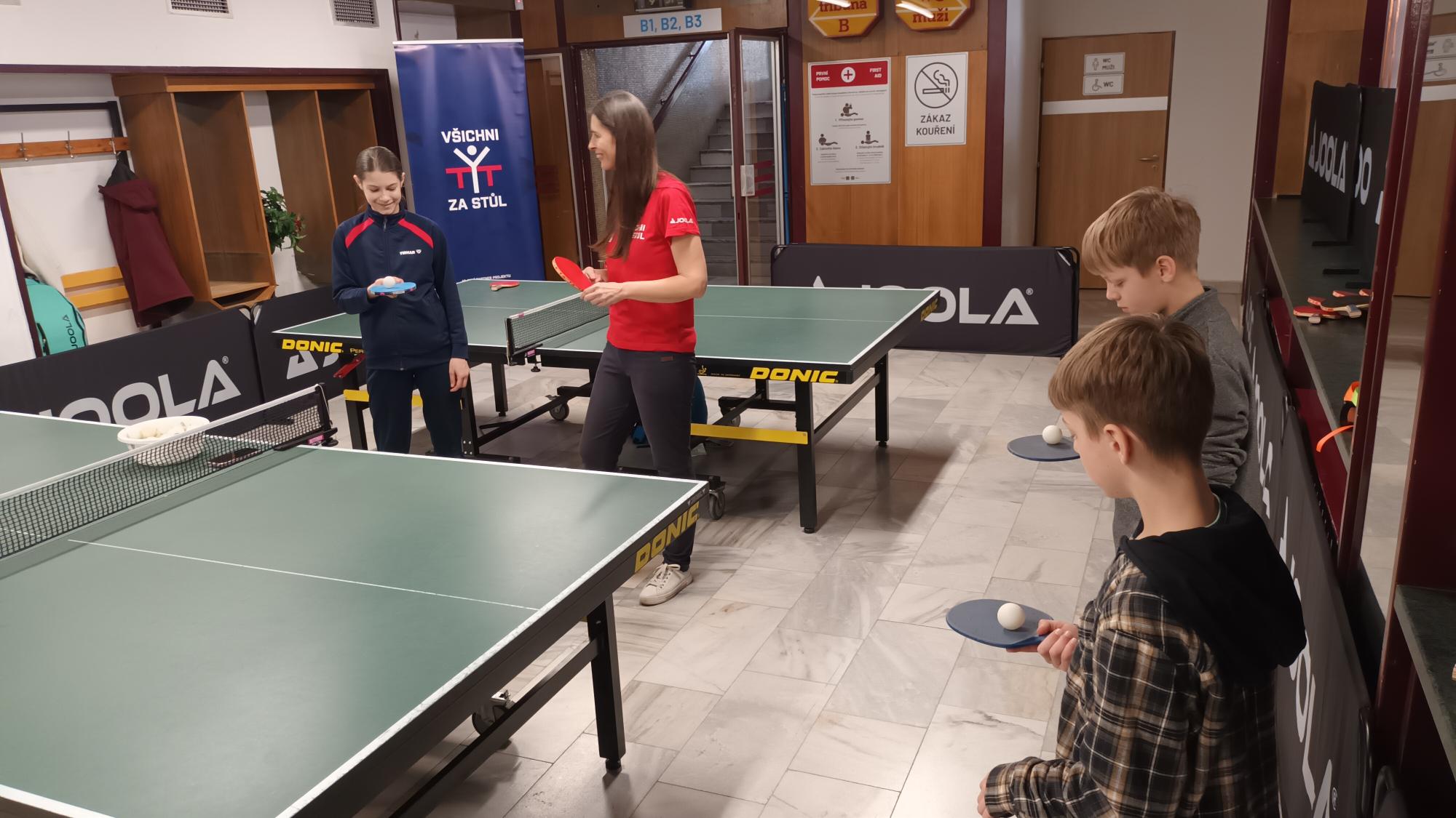 Žáci třetí, čtvrté a několik žáků z páté třídy se tak seznámili s technikou stolního tenisu, naučili se správně držet pálku, už vědí, co je forehand a backhand, zkoušeli se strefovat do míčků nebo ho jen co nejdéle vybalancovat na pálce a někteří dokonce i stihli poskytnout rozhovor s redaktorkou Českého rozhlasu ČB. Nakonec jsme se šli všichni podívat, jak hrají špičky českého stolního tenisu.