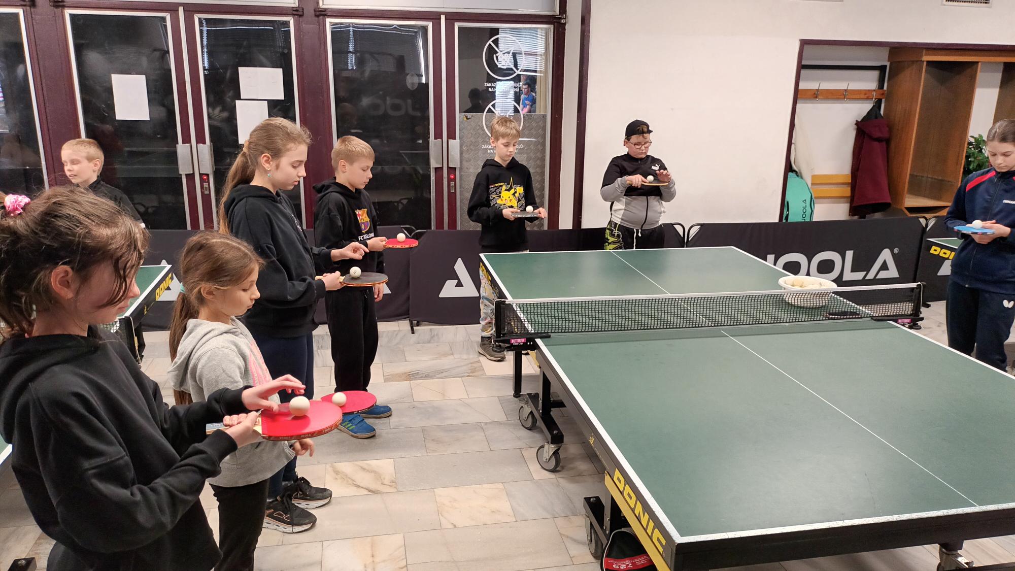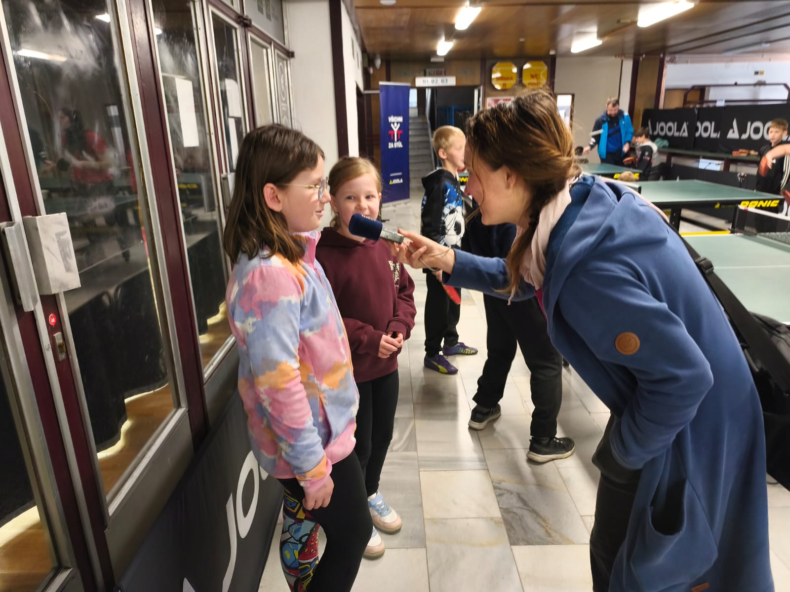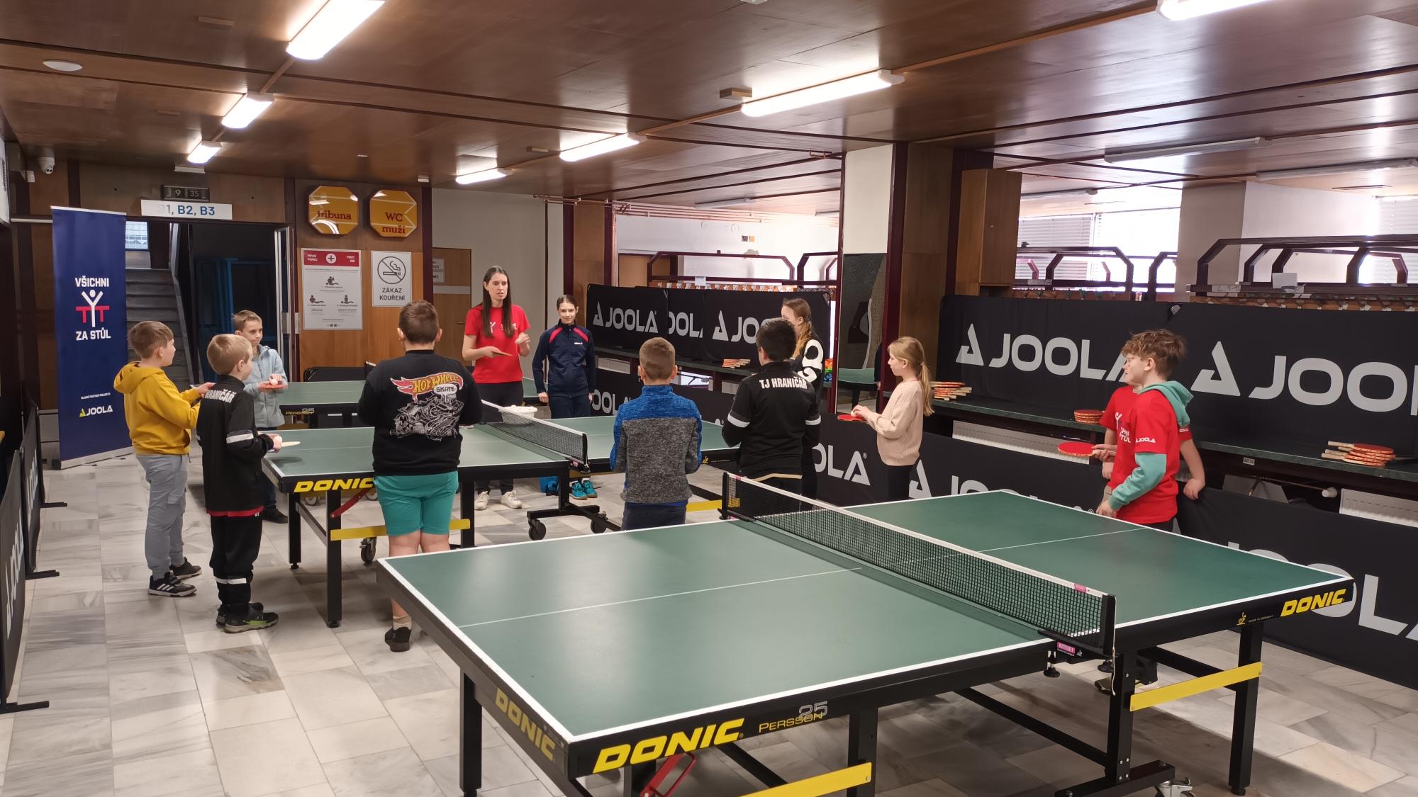 Žáci třetí, čtvrté a několik žáků z páté třídy se tak seznámili s technikou stolního tenisu, naučili se správně držet pálku, už vědí, co je forehand a backhand, zkoušeli se strefovat do míčků nebo ho jen co nejdéle vybalancovat na pálce a někteří dokonce i stihli poskytnout rozhovor s redaktorkou Českého rozhlasu ČB. Nakonec jsme se šli všichni podívat, jak hrají špičky českého stolního tenisu.