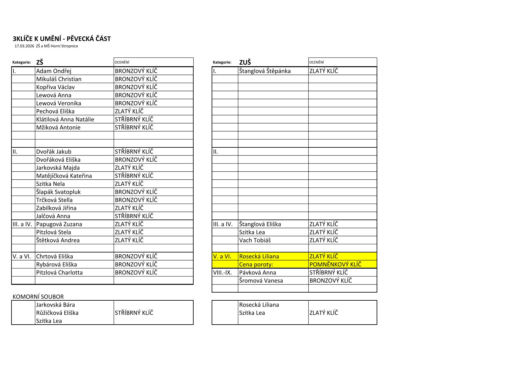 Pěvecká soutěž 3 klíče, která se konala dne 27. března 2026, přinesla nejen množství výjimečných hudebních výkonů, ale také nezapomenutelnou atmosféru plnou emocí, radosti a vzájemné podpory. Do soutěže se zapojili talentovaní zpěváci, kteří svým vystoupením potvrdili, že hudba má jedinečnou schopnost spojovat lidi napříč generacemi.