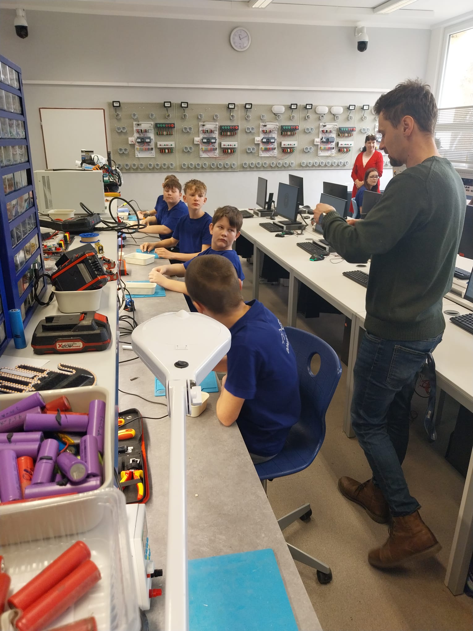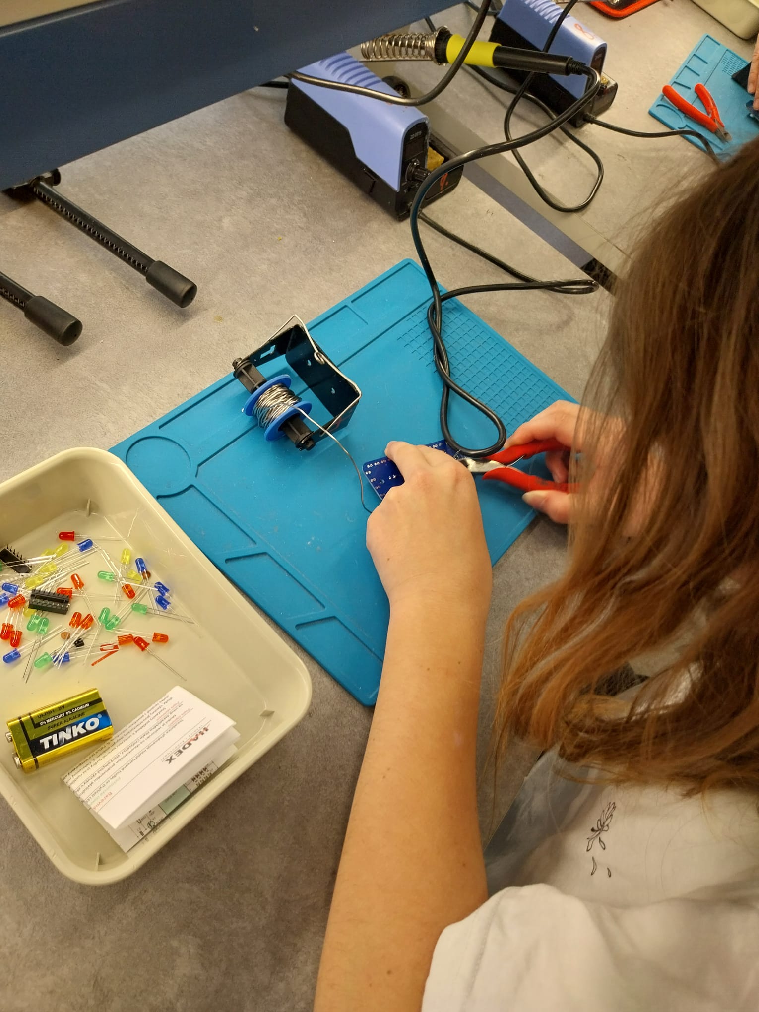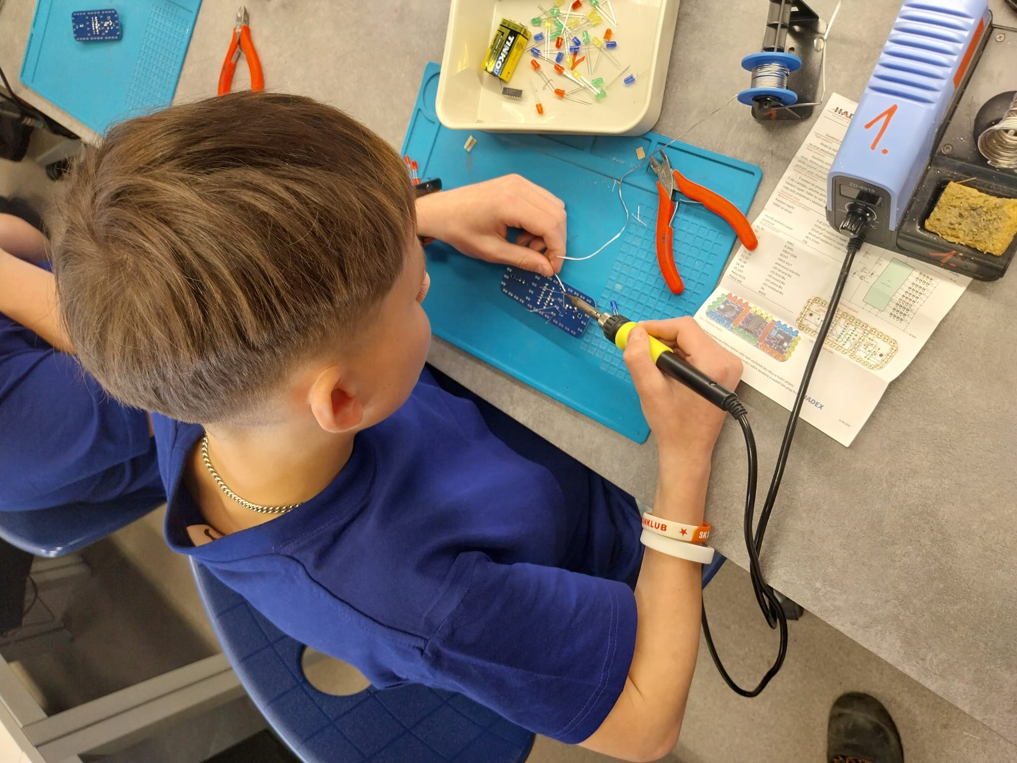 První zkušenost s pájením: „Ono to bliká!“... Program byl rozdělen na dvě části, které se po 90 minutách vystřídaly. Druhá polovina žáků se mezitím v elektrodílnách soustředila na jemnou technickou práci – pájení plošného obvodu stavebnice Hadex. Pro většinu dětí to bylo poprvé, co držely pájku v ruce. Nadšení z vlastnoručně vyrobeného a funkčního spoje s blikajícími LED diodami bylo obrovské a pro mnohé šlo o nejsilnější zážitek dne. Tato forma představení střední školy je pro žáky základních škol neocenitelná. Vyzkoušeli si činnosti, které se na škole skutečně vyučují, a nahlédli do světa moderních technologií a řemesla.